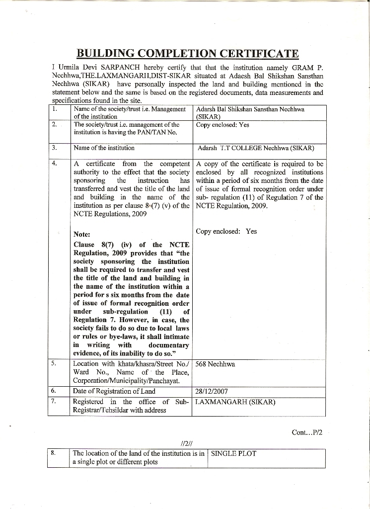 Building Completion Certificates